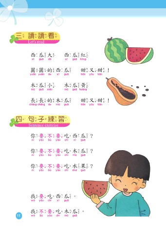 你要不要吃木瓜? 弟 弟 : 我 不 知 道 。