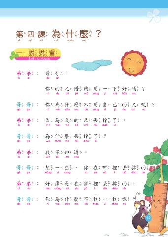 四 句子練習 弟 弟 : 因 為 我 的 尺 丟 掉 了 。