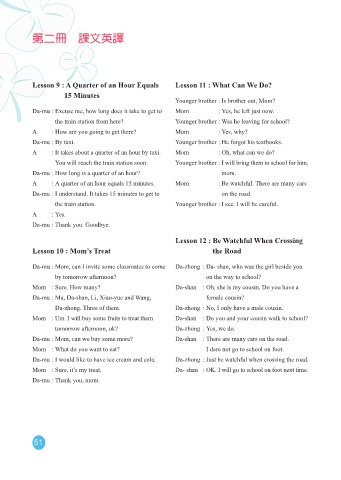 A : A quarter of an hour equals 15 minutes. Mom : Be watchful. There are many cars 以/ 人 可以 以前 以後 所以