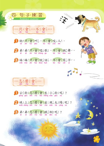 3 隻 一隻狗 一隻會叫的狗 2 弟弟只會唱歌,不會跳舞。