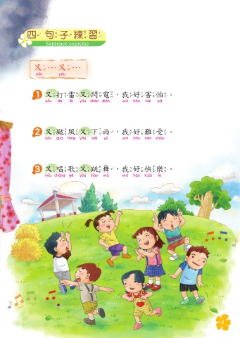 快下雨了                                                                                                      1     又打雷又閃電,我好害怕。
