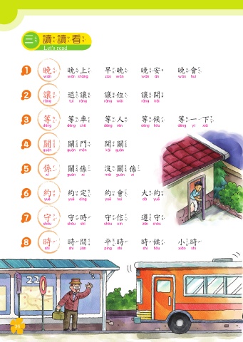 1 晚 晚上 早晚 晚安 晚會 對不起…讓…