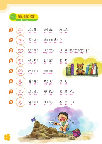 4 架 吵架 打架 書架 剛才老師看見小月跟同學走出教室