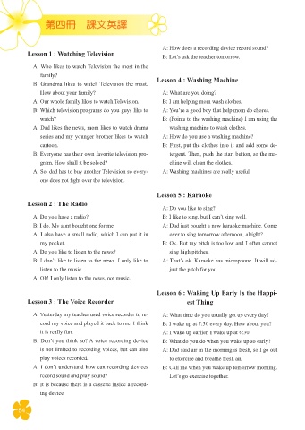 A: Yesterday my teacher used voice recorder to re- A: What time do you usually get up every day? B: Yes. They are all our relatives.