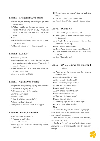 A: Do you like to listen to the news? sing high pitches. Lesson 9 : Arguing with Whom? B: Uncle is dad’s younger brothers.