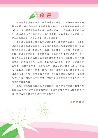 材內涵更符菲華社會的脈動,本會特邀集華語教學專家重新修編,期能 本套教材,應可進行日常生活溝通,並能書寫日常應用「便條」、