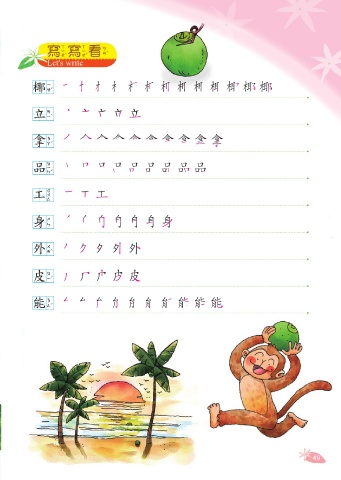 媽媽說:「椰子硬殼的上面有                                                                                                      Let's write