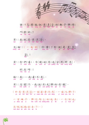 誰?怎麼能把貝多芬的曲子彈得 那納麼好? 貝:我就是貝多芬。 兄妹: (一起說) 什麼?你就是貝多 芬! 貝: 你們看,今晚的月光分外明亮, 好美呀! 妹:我--我看不見。 貝:沒關