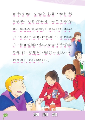 我去吃飯  向他們要鹽                                                       他們卻                                                              我們聽了  都哈哈大笑  原來