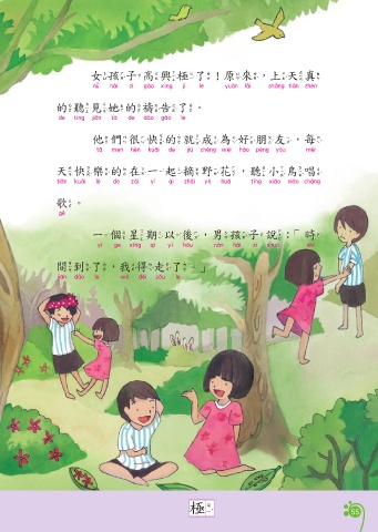 有一天,她在樹林裡摘野花, 一個星期以後,男孩子說:「時