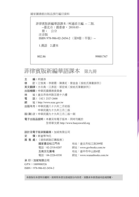 菲 律賓版新編華語課本 / 柯遜添主編. -- 二版.