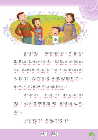 以後,蠶就從嘴裡吐出細細的絲, 幾千年前就發明這個妙方。」