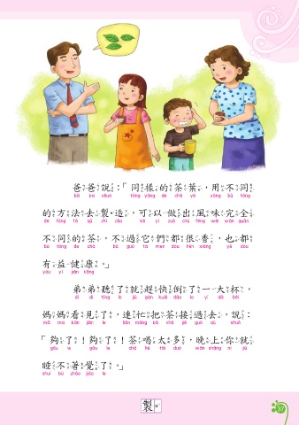 喝法,中國人喝茶是不加糖的。」 爸爸說:「同樣的茶葉,用不同