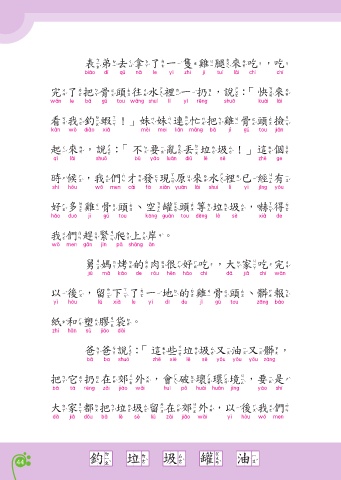 爸爸說 這些垃圾又油又髒 會造成環境汙染 破壞了大自然