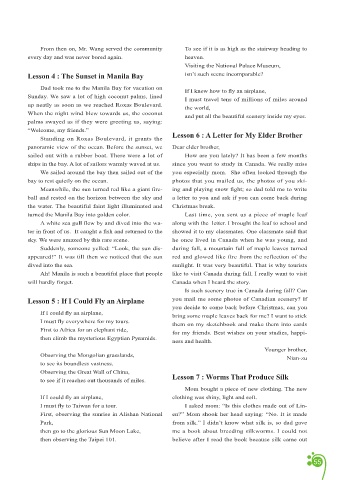 One night, when dad and I crossed an intersec- black bird still didn’t yield. He said, “No! Yi Ya! Lesson 4 : The Sunset in Manila Bay isn’t such scene incomparable?