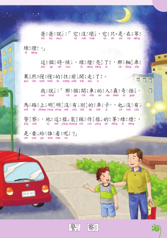有一天晚上,爸爸帶我去看朋 綠燈。」