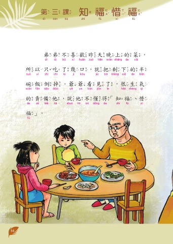 碗飯倒掉 爺爺看見了 很生氣 民,他們的手上拿著飯碗,可是碗