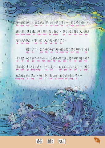 天都出海去打魚。 糟了,出海的漁船怎麼辦?村