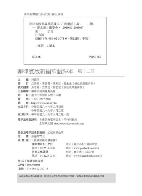 版(刷)次:中華民國九十九年六月二版一刷