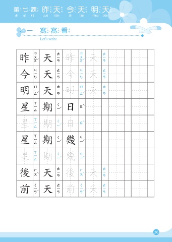 第七課 昨天 今天 明天 第 七課 昨 天 今 天 明 天 六 聽寫練習 一 寫寫看 Listening and writing exercise Let's write 昨 昨 天 天 昨 昨 天 天 今 今 天 天 今 今 天 天 明 明 天 天 明 明 天 天 星 星 期 期 日 日 星 星 期 期 日 日 星 星 期 期 幾 幾 星 星 期 期 幾 幾 後 後 天 天 後 後 天 天 前 前 天 天 前 前 天 天 家長簽名: 老師簽章: 家長簽名 老師簽章