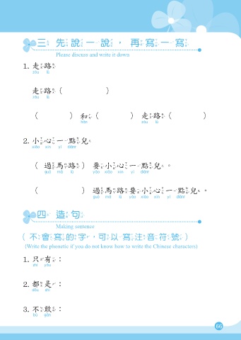 答 過馬路要注意 (Write the phonetic if you do not know how to write the Chinese characters)