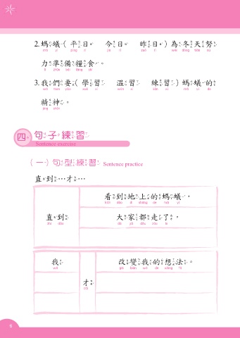 2. 螞蟻(平日 今日 昨日) 為冬天努 (二)造句 Making sentence