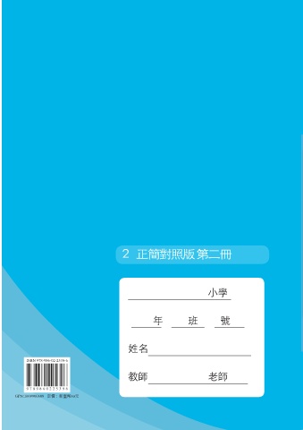 2 正簡對照版 第二冊 小學 年 班 號 姓名 ISBN 978-986-02-2539-6 教師 老師 978986022539 6 GPN:1009900689 50