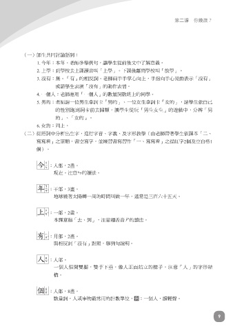 (二) 從語詞中分析出生字,進行字音、字義、及字形教學(由老師帶著學生依課本「二、