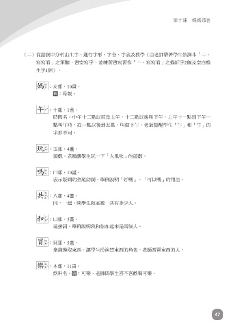 (二) 從語詞中分析出生字,進行字形、字音、字義及教學(由老師帶著學生依課本「二、