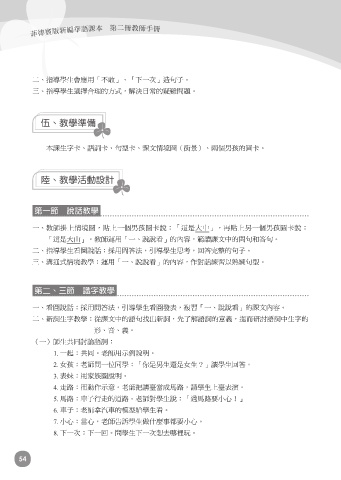 一、看圖說話:採用問答法,引導學生看圖發表,複習「一、說說看」的課文內容。