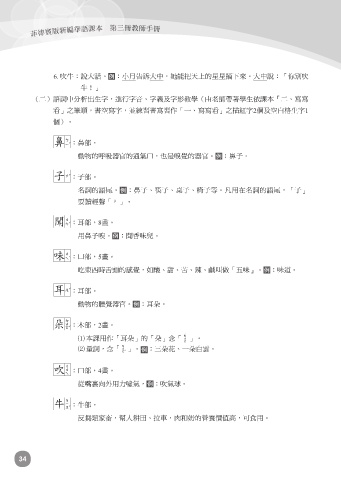 (二) 語詞中分析出生字,進行字音、字義及字形教學(由老師帶著學生依課本「二、寫寫