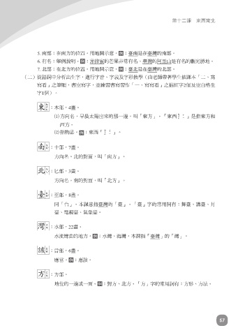 5. 南部:在南方的位置。用地圖示意。例:臺南是在臺灣的南部。