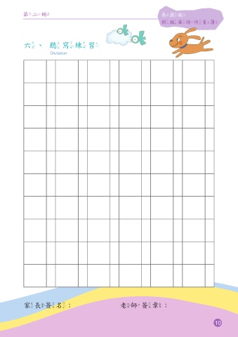 第二冊 泰國版 新編華語作業簿 六、聽寫練習 Dictation 家長簽名: 老師簽章: 10