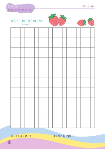 泰國版 第二冊 新編華語作業簿 六、聽寫練習 Dictation 家長簽名: 老師簽章: 15