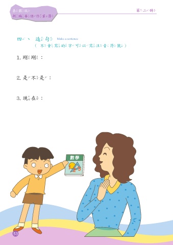 泰國版 第二冊 新編華語作業簿 四、造句 Make a sentence (不會寫的字可以寫注音符號) 1. 剛剛: 2. 是不是: 3. 現在: 53