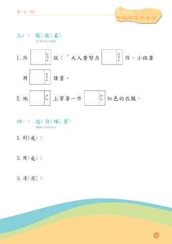 䖜㳯㵖 䍙䒈䂙 䡾䰬䞇䫸㹻䢉俴 㲸ă䠽䠽䈇 To fill the blank ৻ ৻ 2/!Ѧ!!!!!!!!ᇥǺȨεΓाոΚ!!!!!!!!բǴλ࠸ा ৻ Ҕ!!!!!!!!᠐ਜǶ 3/д!!!!!!!!ऀҹ!!!!!!!!आՅޑՊܺǶ 㵽ă䘐㵺䰦䖷 Make sentences 2/!㾢爾Ĉ 3/!㶭爾Ĉ 4/!䕇䯞Ĉ 42