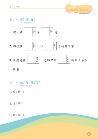 䖜㳯㵖 䍙䒈䂙 䡾䰬䞇䫸㹻䢉俴 㲸ă䠽䠽䈇 To fill the blank ୃ ੁ 2/ᗙη္!!!!!!!!!!!!!!!!แǶ ᒆ ൮ 3/္ٗՐ!!!!!!!!Տ!!!!!!!!ӜޑࣽᏢৎǶ ᱲ ኇ 4/!дੰளࡐ!!!!!!!!ǴԴৣѝӳ!!!!!!!!ཥࢴΓୖу КᖻǶ 㵽ă䘐㵺䰦䖷 Make sentences 2/!䡛䑨Ĉ 3/!䀒䜞Ĉ 4/!㶭䘕Ĉ 46