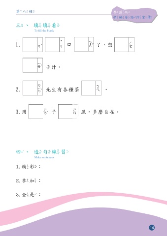 䖜㲯㵖 䍙䒈䂙 䡾䰬䞇䫸㹻䢉俴 㲸ă䠽䠽䈇 To fill the blank ᐅ ፍ ᗂ 㿺 2/!!!!!!!!!!!!!!!!α!!!!!!!!ΑǴགྷ!!!!!!!!!!!!!!!!!!!! ᗂ !!!!!!!!!!ηҊǶ ൚ ൛ 3/!!!!!!!!ӃғԖӚᅿૡ!!!!!!!!Ƕ တ 4/Ҕ!!!!!!!!η!!!!!!!!॥ǴӭሶԾӧǶ!!!!!! 㵽ă䘐㵺䰦䖷 Make sentences 2/!䪫䓊Ĉ 3/!䑯㵜Ĉ 4/!㷝䆛Ĉ 14