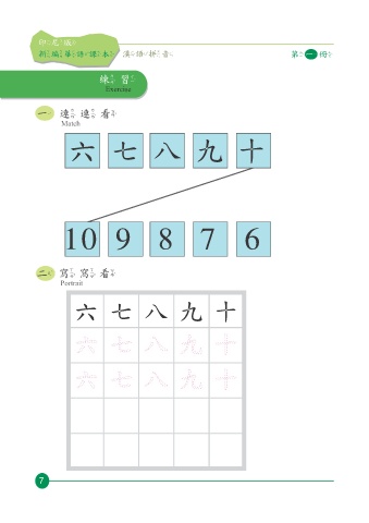 ㊞尼版 ㊞尼版 新編華語課本 漢語拼音 第㆒冊 第㆒冊 漢語拼音 新編華語課本 練 習 Exercise ㆒ 連 連 看 Match 六 七 八 九 十 10 9 8 7 6 ㆓ ㊢ ㊢ 看 Portrait 六 七 八 九 十 7 8