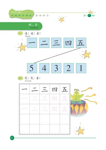 ㊞尼版 ㊞尼版 新編華語課本 漢語拼音 第㆒冊 第㆒冊 漢語拼音 新編華語課本 練 習 Exercise ㆒ 連 連 看 Match 一 二 三 四 五 5 4 3 2 1 ㆓ ㊢ ㊢ 看 Portrait 一 二 三 四 五 3 4
