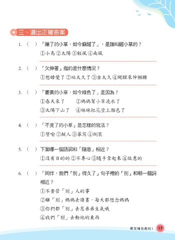 1. ( ) 「睡了的小草,如今蘇醒了」,是誰叫醒小草的?
