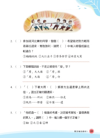 2. ( ) 參加拔河比賽的同學,個個( ),希望能把對方輕而