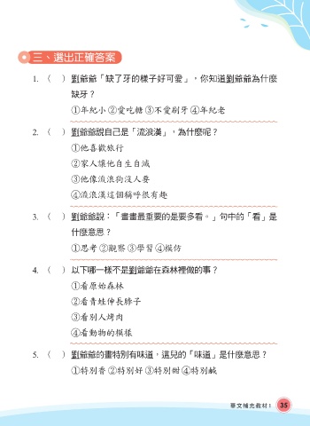 1. ( ) 劉爺爺「缺了牙的樣子好可愛」,你知道劉爺爺為什麼