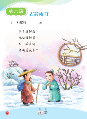 第六課 古詩兩首 (一)雜詩 王維 君自故鄉來, 應知故鄉事。 來日綺窗前, 寒梅著花未? 綺 窗 36 綺窗