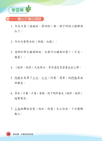 1.   冬天吹著(溫暖的、凜冽的)風,孩子們的小臉都凍