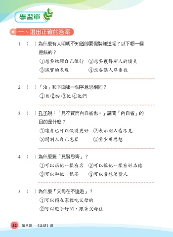 3. ( ) 孔子說:「見不賢而內自省也。」請問「內自省」的