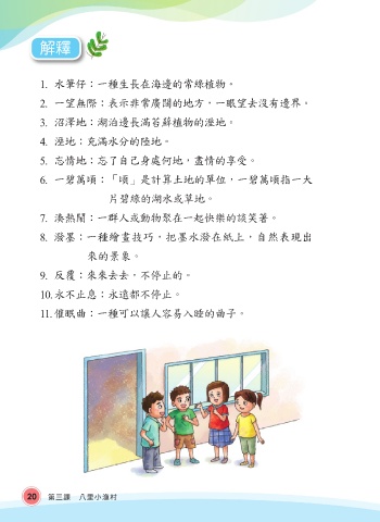3. 沼澤地:湖泊邊長滿苔蘚植物的溼地。