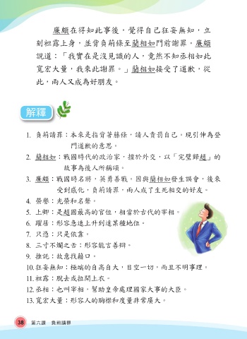 3. 廉頗: 戰國時名將,英勇善戰。因與藺相如發生誤會,後來