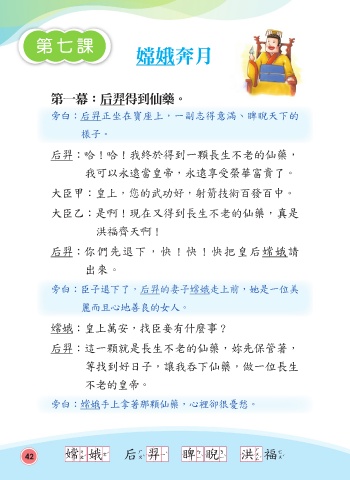 旁白: 臣子退下了,后羿的妻子嫦娥走上前,她是一位美