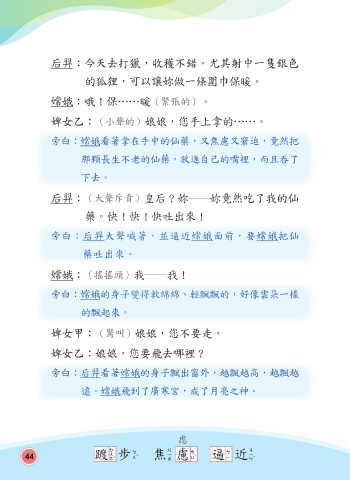 旁白: 嫦娥的身子變得軟綿綿、輕飄飄的,好像雲朵一樣